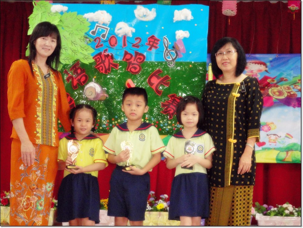 | Pemenang-pemenang bergambar dengan Guru Besar dan Guru Prasekolah Pemenang Pertama: Rein Ang Zi Hao Pemenang Kedua: Chan Win Yi Pemenang Ketiga: Lim Jia Yi |